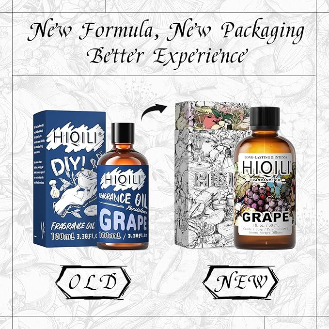 HIQILI Grape Fragrance Oil for Diffuser & Oil Burner, Fruity Scents for Making Candles, Hand Soap, Air Freshener, Long Lasting - 1 Fl Oz