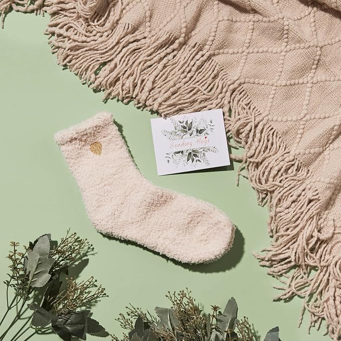 - 9PCS GET WELL SOON GIFT BASKETS FOR WOMEN-Inside this elegant neutral-toned gift box, you'll find: (1) Soft knitted tassel blanket (50"x70") (2) Cozy coral fleece socks (3) Ceramic coffee mug (4) Handmade positive heart with "pocket hug" (5) Vintage-style A6 notebook (6) Gold ballpoint pen (7) 2.8oz soy wax candle (8) Greeting card (9) Gender-neutral gift box - beautifully packaged and ready to give