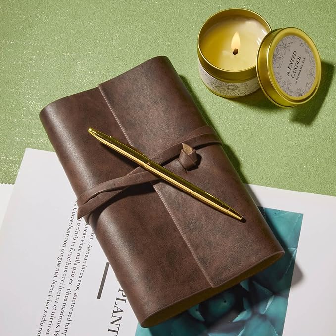 - MINDFUL JOURNAL & SOOTHING SOY CANDLE-The vintage A6 notebook encourages journaling and reflection. Paired with the clean-burning soy wax candle, it creates a calming ritual for mindfulness, relaxation, or unwinding after a long day. Perfect for Valentine's Day, self-care, or quiet moments
