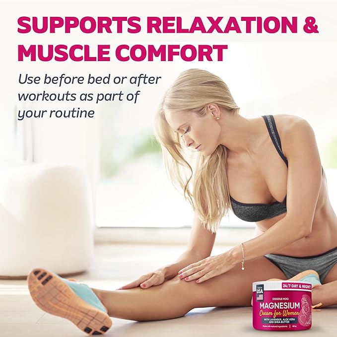 DOODLE HOG Magnesium Cream for Women Lavender Scent - Soothing Relief & Relaxation with Calendula, Aloe Vera, Shea Butter - Topical Magnesium Cream for Sleep - USA Made - (4 oz, Lavender)