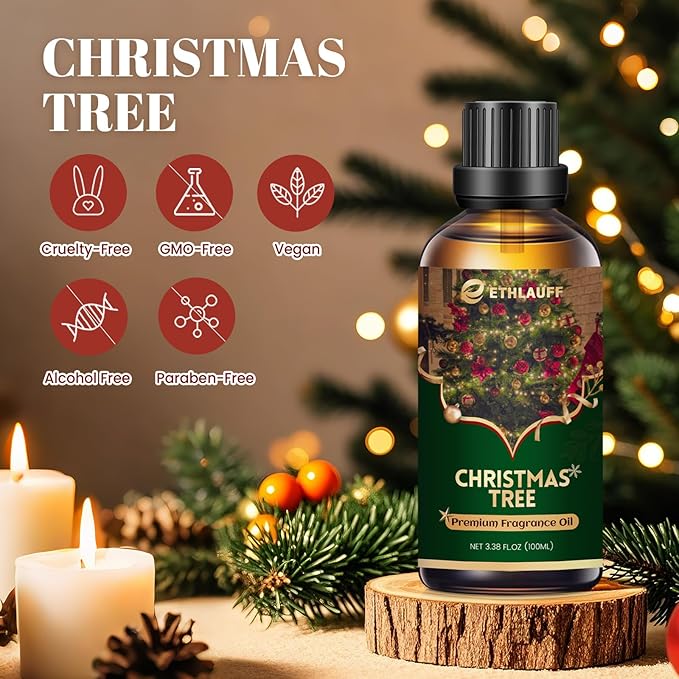 Christmas Tree Essential Oil 3.38 Fl Oz (100ml), Christmas Essential Oils for Diffusers, Winter Essential Oils for Candle Making, Cozy Holiday Scented Oils