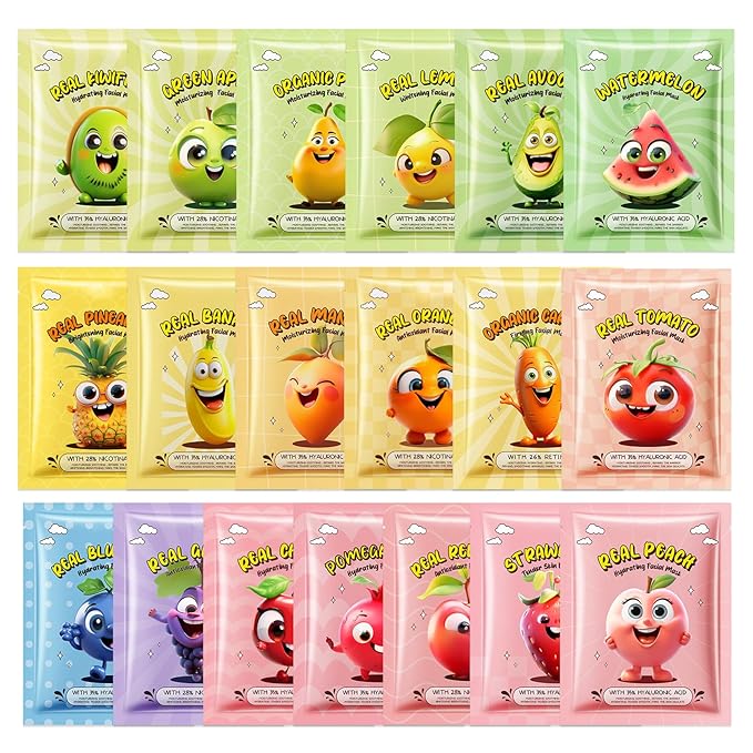 19PCS Hydrating Facial Sheet Mask,Moisturizing Face Masks Skincare Gift Set,Long Lasting Face Mask Skin Care & Facial Mask Kit for All Skin Types 14
