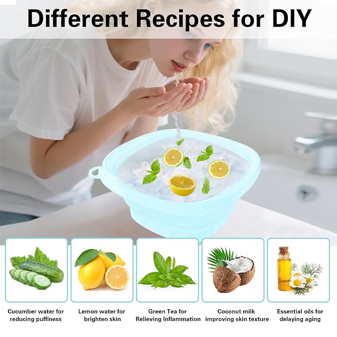 Face Bowl for Ice with Built-in IceTray,Collapsible Silicone Face Ice Bowl – Cold Plunge Therapy for Skin Tightening & Facial Treatment– Portable Spa Tool for Home & Travel(Blue)
