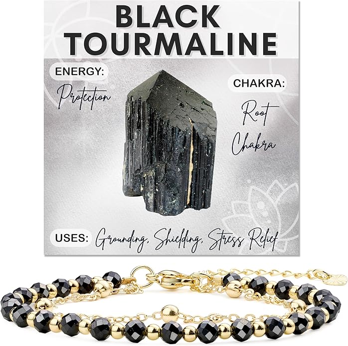 - Natural Handmade Black Tourmaline Bracelets: Our crystal beaded bracelets are carefully handcrafted using Black Tourmaline,Paired with 18K gold-plated accents, this piece blends earthy elegance with timeless sophistication. Since each crystal is naturally formed, the exact color and veining may vary slightly from the product images, making your bracelet uniquely yours