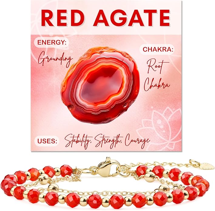 - Natural Handmade Red Agate Bracelets: Our crystal beaded bracelets are carefully handcrafted using Red Agate,Paired with 18K gold-plated accents, this piece blends earthy elegance with timeless sophistication. Since each crystal is naturally formed, the exact color and veining may vary slightly from the product images, making your bracelet uniquely yours