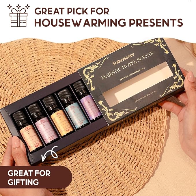 - [SIGNATURE HOTEL SCENTS THAT REPLICATE ROYALTY]: These home fragrance products feature lavender essential oil, oud essential oil, and other fragrances that leave a lingering scent behind. They offer a luxurious and personal touch and the versatile nature of these diffuser oils or oil sets makes them enjoyable to all, whether they're new to aromatherapy or a seasoned enthusiast. Pick this fragrance oil set and bask in the majestic aura of aromas that scream elite!