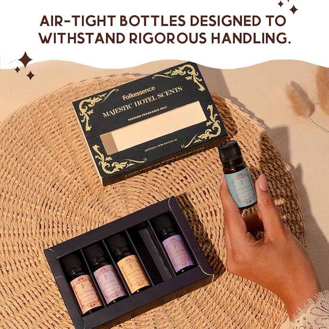- [IMPRESS GUESTS IN STYLE]: Give your home an opulent makeover with these essential oils for diffuser or fragrance oils for home that will charm your visitors within minutes. This hotel essential oils set will recreate the extravagance you feel while staying in a seven-star establishment. These essential oils organic also feature a secure, leak-proof cap to prevent spills, and the robust design ensures that your essential oil remains perfect for both home use and travel. Take the bottles along on your retreats and see the magic unfold.