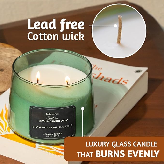 - [CRAFTED FROM NATURAL INGREDIENTS]: Folkulture's commitment to quality starts with our ingredients. All our jar candles are crafted exclusively from premium Eucalyptus fragrance oils or Eucalyptus essential oil, Sage oil and soy wax. We use only pure ingredients derived from flowers, leaves, roots, and fruits, with no parabens.Our luxury candles are natural candles aee non toxic and a testament to our dedication to purity and craftsmanship. Give your loved ones a caring christmas gift.