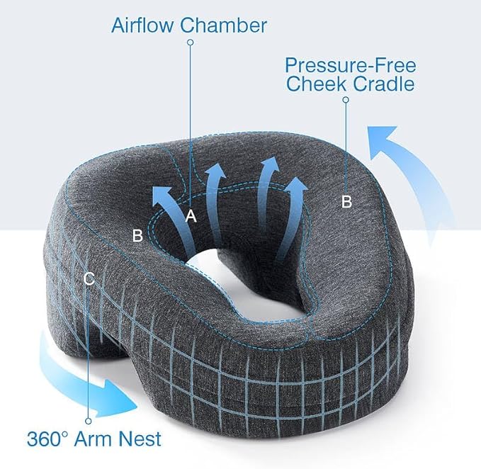 - Post-Surgery Recovery Essential: Designed for face-down positioning needs, this massage headrest for bed helps maintain proper alignment during recovery. The hollow center reduces pressure on sensitive areas while allowing comfortable breathing