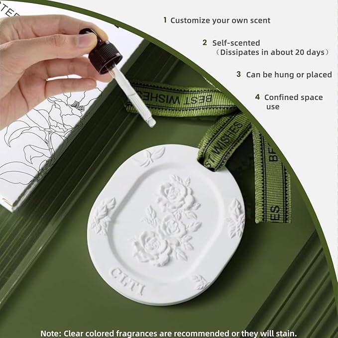 - *NOTE: THE PRODUCT IS PRE-SCENTED:Don’t like the original scent? place it in a well-ventilated area to accelerate the scentfade. Add oil correctly: 1. Test your oil first, Apply oil to a tissue. If no scent remains after 2 hours, replace your oil. 2. Pour until the stone’s floral part is submerged. Use 100% plant-based oil with a concentration of at least 5% (low-quality synthetic fragrances will not work). 3. Wait for full absorption: After absorption, let it sit for at least 20 minutes.