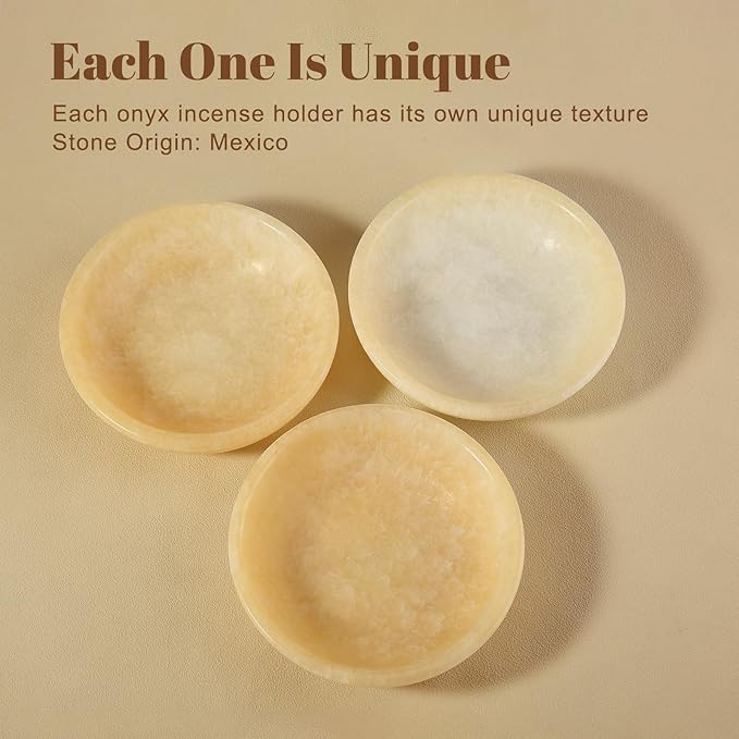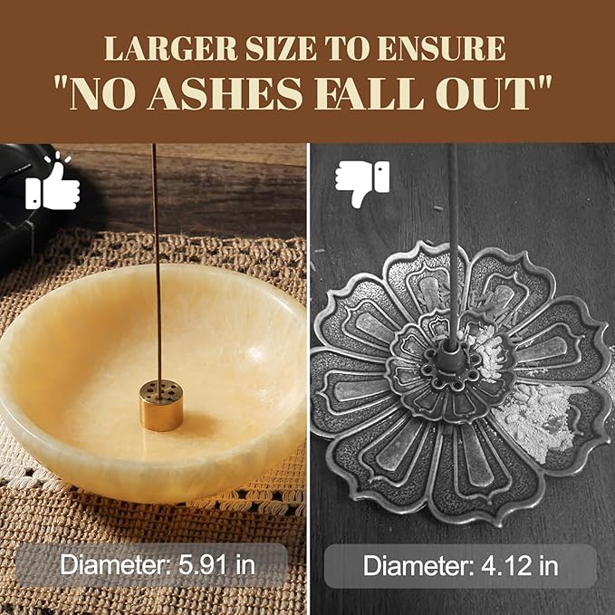 - 【Catch All the Incense Ash】The wider 5.91" diameter makes it catch ash easier.The surface of the onyx incense bowl is smooth and washable, very easy to clean.Can be widely used in living room, bedroom, study, meditation room, yoga room, etc