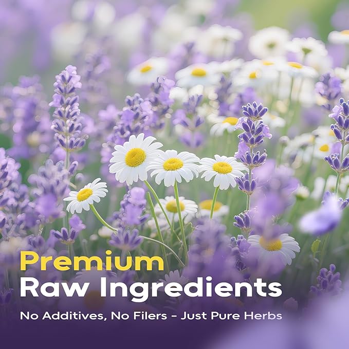 - 100% Pure & Premium: We carefully select premium, fresh chamomile flowers and lavender buds as raw materials, ensuring a pure tea experience. Free from additives or chemicals, each tea bag is filled with hand-picked dried flowers to create a natural herbal tea