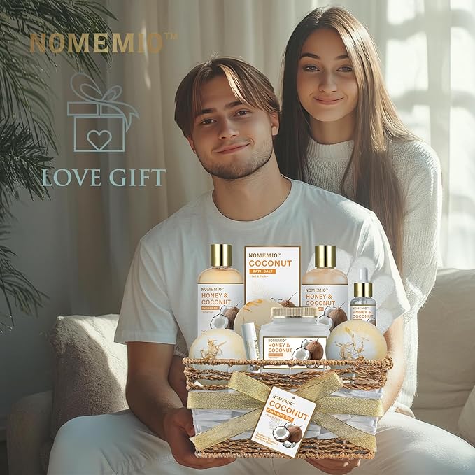Spa Gift Basket for Women, 11pcs Honey & Coconut Luxury Bath Gift Set, Spa Kit with Shower Gel, Bubble Bath, Bath Bombs , Christmas Gifts for Her, Women, Mom Birthday