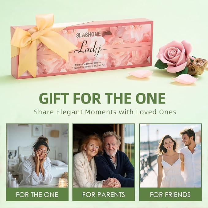 - đăPERFECT GIFT FOR HERăElegantly packaged, this Lady Essential Oils Set makes an ideal gift for mothers, wives, girlfriends, sisters, or anyone who loves floral fragrances. A thoughtful present for birthdays, Motherâs Day, Valentineâs Day, or any moment of self-care and love.