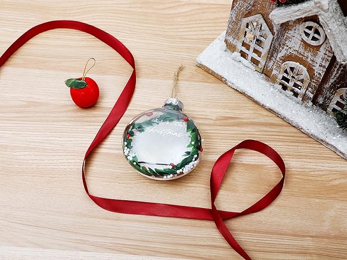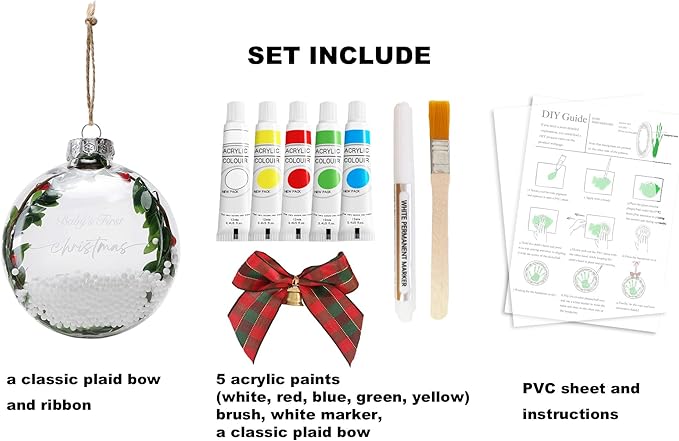 - Baby's First Christmas Ornament 2025: DIY your baby's handprint on this flattened hollow plastic orb (3.15" diameter). Features a festive printed side and smooth blank side for personalized memories