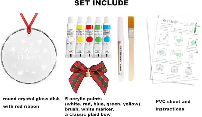 - Baby's First Christmas Ornament 2025: DIY your baby's handprint on this 4-inch round crystal glass disk keepsake (0.24" thick). Features a festive printed side and smooth blank side for creating personalized memories