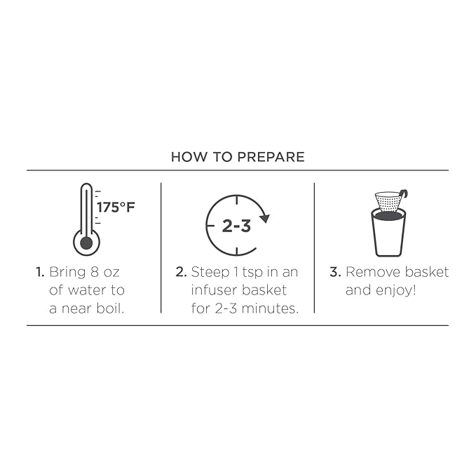 - HOW TO STEEP - Measure 1 teaspoon into an infuser basket. Steep the tea in the boiling water for 3-5 minutes.