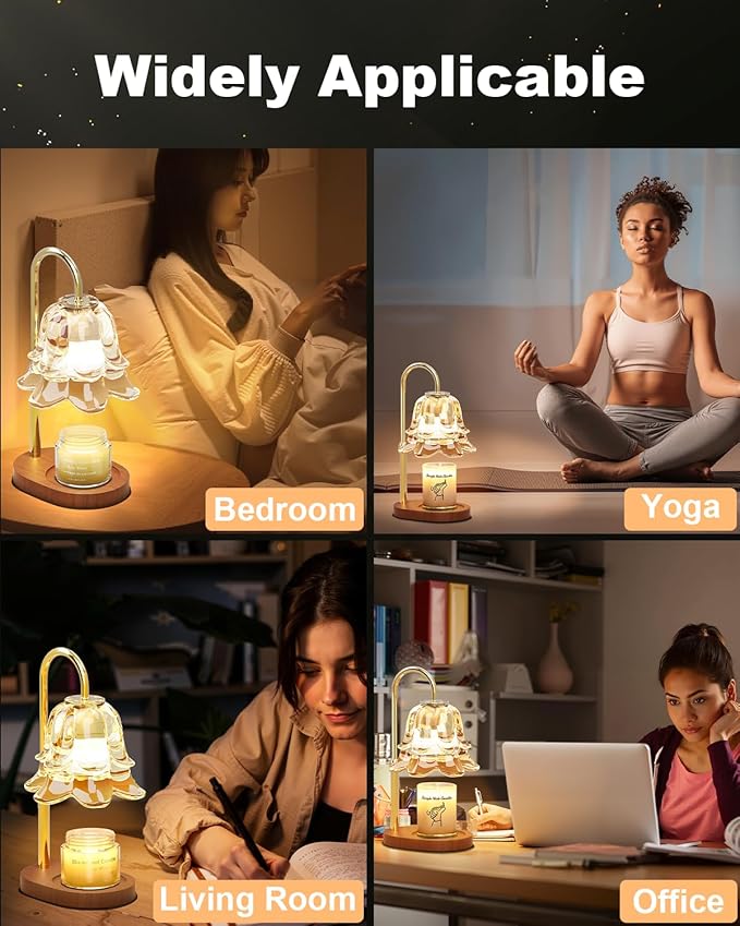 - 【Flame-Free & Eco-Safe Candle Warmer】:This candle warmer lamp utilizes advanced heating technology to melt candles from top to bottom, achieving a flameless, smokeless, and pollution-free effect. Both the lampshade and base are coated with a high-temperature resistant material, effectively addressing concerns of fire hazards. When you relax or read time to put it on the side, you can enjoy the melting candle light brings ease and comfort, SooFoo candle warmer light is your top choice