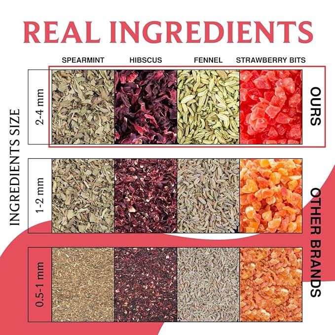 - Refreshing Strawberry Mint Black Tea: A vibrant, caffeine blend of tart hibiscus and zesty strawberry, delivering a burst of fruity flavor with every sip. This refreshing tea is perfect for any time of the day.