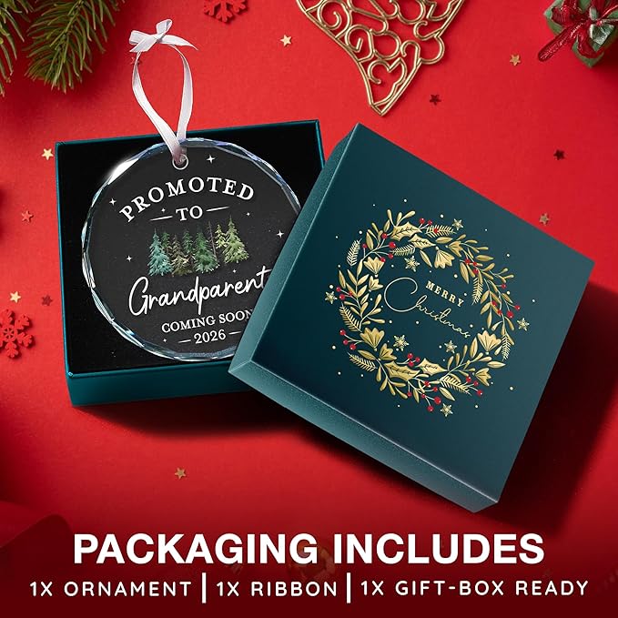- ORNAMENT SET DETAILS - Each beautiful ornament for grandparents arrives ready to gift in a festive box, with a handcrafted round glass design and an elegant ribbon for hanging. This complete gift set is perfect for a Christmas pregnancy reveal, Christmas present for grandparents, or unique grandparents gift to mark a special milestone and capture holiday memories forever.