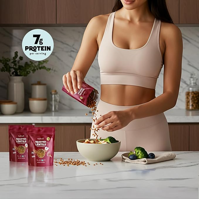 - Plant-based protein: Nutruit roasted lentil snacks provide 7 grams of plant-based protein and 110 calories per serving, making them an excellent protein source for vegans and vegetarians.