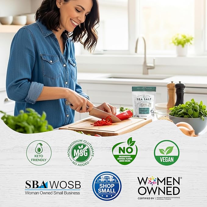 FLORIDA PURE Rosemary Sea Salt - 80+ Mineral Sea Salt, Natural, Unrefined, Non Iodized - for Baking, Cooking, Seasoning & Enhancing Taste - Hand-harvested Flaky Sea Salt (3 oz. Pouch)