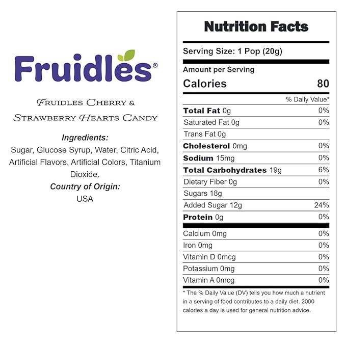 Fruidles Cherry & Strawberry Hearts Candy, Purple & Pink Heart Shaped Hard Candy Sucker Individually Wrapped in Foil, Made in Brazil (2 Pounds)