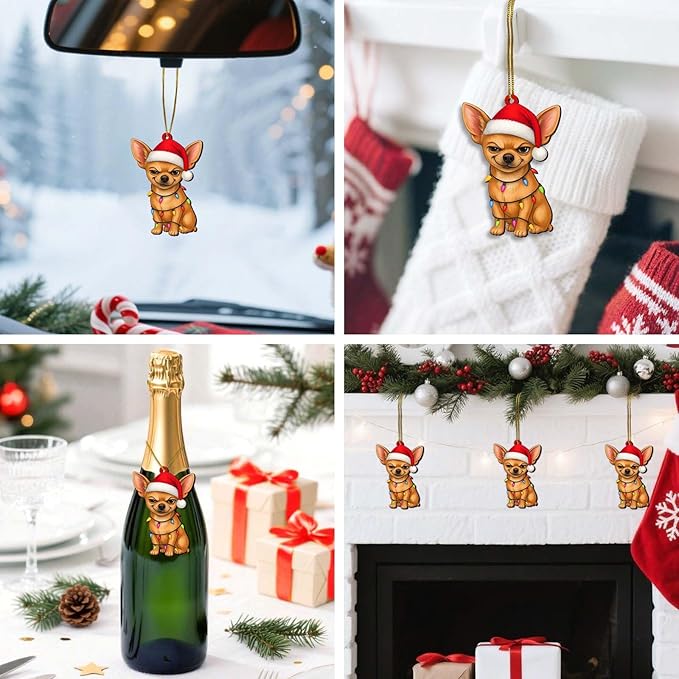 2 Side Printed Flat Christmas Wooden Ornaments, Animal Keepsake Hanging Tree Decoration, Santa Chihuahua Ornament