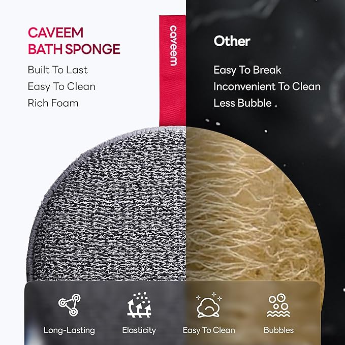 - [MONTHLY SKIN RENEWAL MADE EASY] Use this Caveem body scrubber for shower 2–3 times a week to help remove dead skin and support your skin’s renewal cycle. A practical body exfoliating sponge that refreshes without irritation.