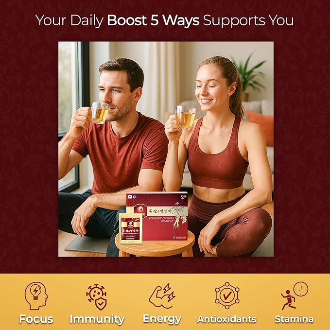 - Balanced Wellness: A powerful blend of Korean Red Ginseng and Ginger, known to support circulation, immunity, energy, and digestion.