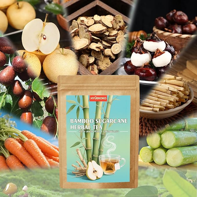 - Pure Ingredient Composition: Contains sun-dried Chinese Sweetcane, Cogon Grass Root, Pear, Water Chestnut, Jujube, Carrot and Licorice Root. Non-GMO, gluten-free ingredients with no artificial additives or caffeine.