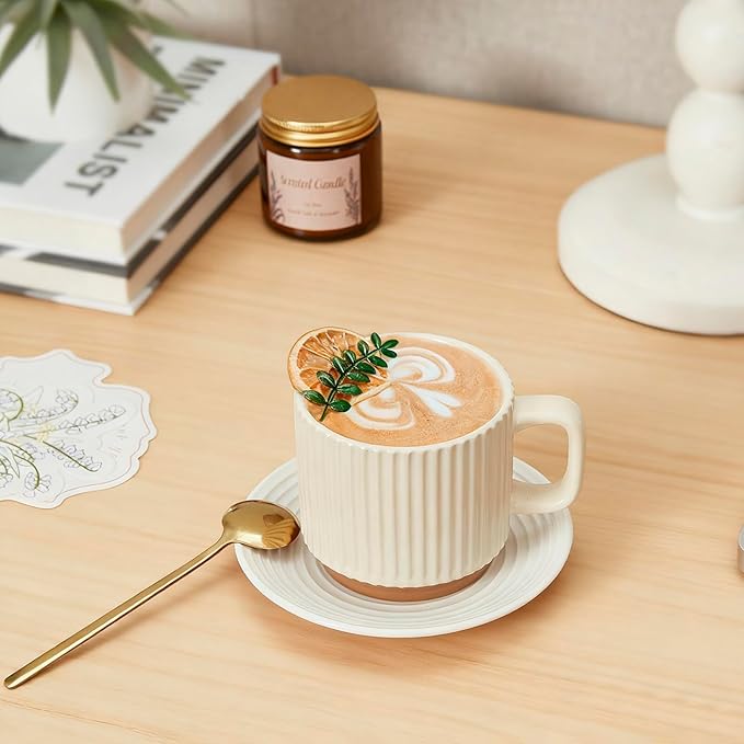- Elegant Ceramic Mug & Spoon Set‌: Unwind with the soothing scent of our lavender soy wax candle, then enjoy your favorite warm drink from the matching 8.8oz ceramic mug. This perfectly paired set combines relaxation with practicality—the mug is microwave and dishwasher-safe for daily use, while the golden spoon adds a touch of elegance. Together, they create moments of calm and comfort