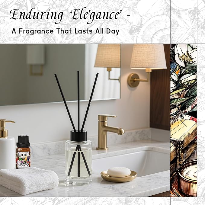 HIQILI Tobacco Vanilla Fragrance Oil, Refill for Diffusers & Humidifiers, Hotel-Grade Scent, Suitable for Home Use - 0.34 Fl Oz