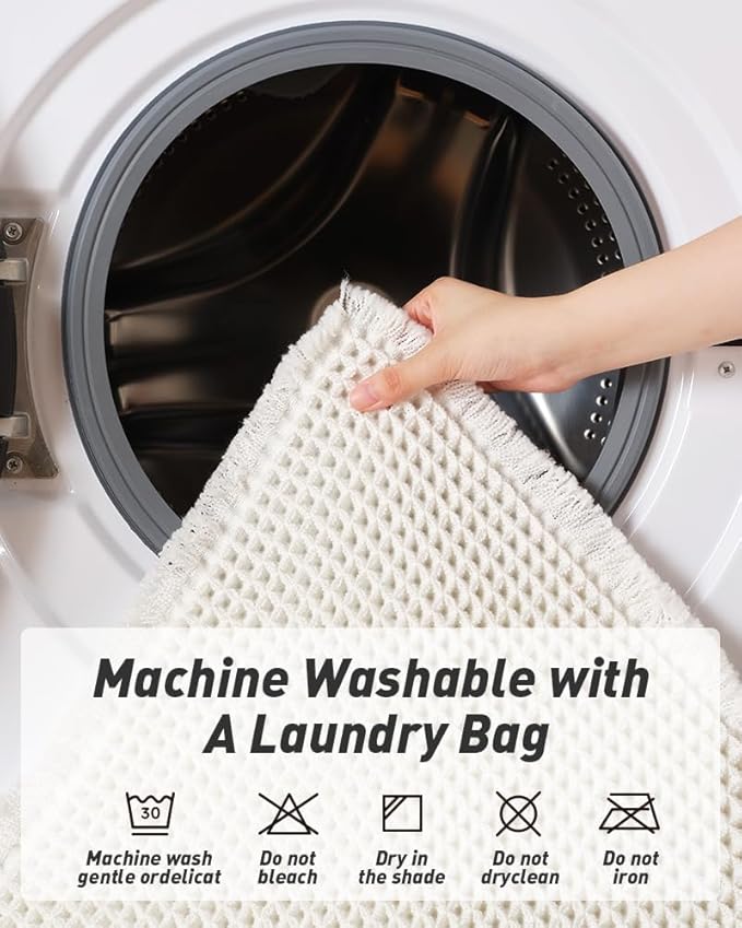- Upgraded Waffle Desgin: This boho bath mat is power-loomed with upgraded yarns-Integrating decoration and durability. The heavier and thicker threads are applied to make sure the pattern will be more solid and compact- NEVER OUT OF SHAPE!