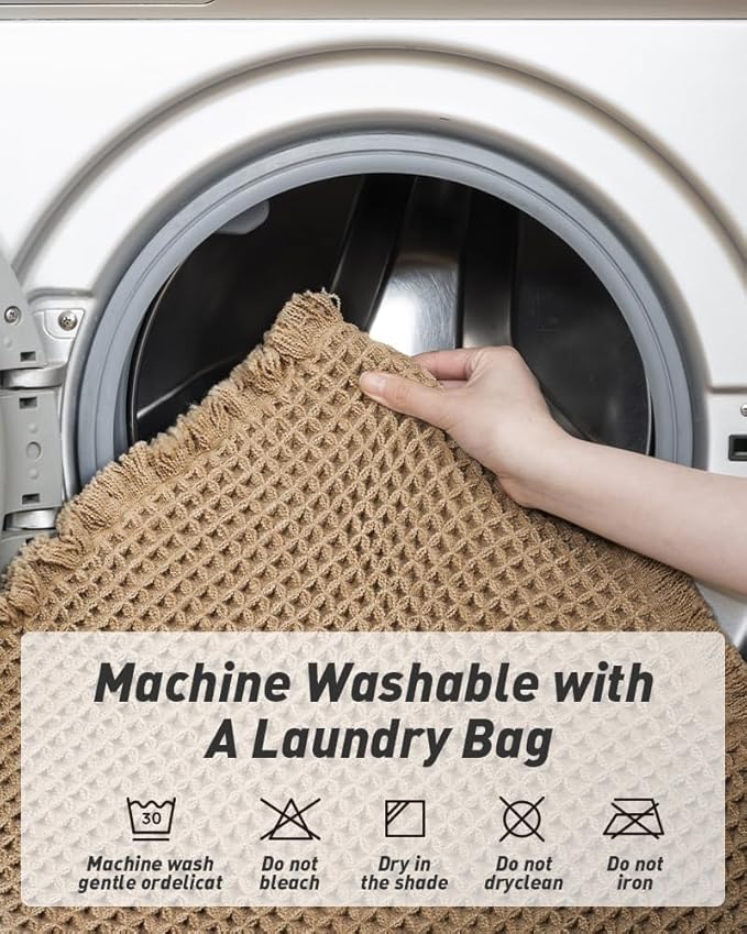 - Easy to Maintain: Machine washable bathroom rugs provide convenience in your daily life. Recommend gentle mode,cold water. Or just shake the dust off from the bath rugs for simple cleaning.