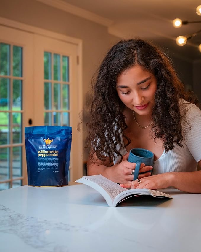 Willamette Peppermint Tea, Organic Loose Leaf Mint Herbal Tea – Soothing, Caffeine-Free – Refreshing Hot or Iced – 4 oz Resealable Bag (Makes 50 Cups) – The Elegant Elephant