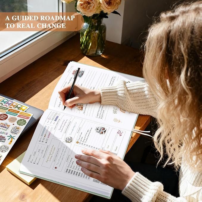 - Premium Quality: Made with a gold foil linen hardcover, 120gsm paper, colorful bookmarks, and bonus mindfulness stickers, this mental health journal feels as beautiful as the self-love journey inside