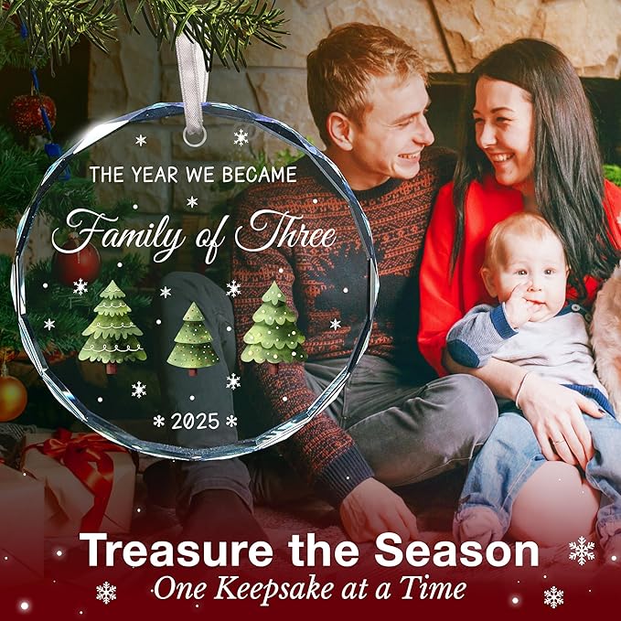 - IDEAL SIZE & DISPLAY OPTIONS FOR ANY CHRISTMAS TREE – Measuring 8 x 8 x 0.6 cm (3.15 x 3.15 x 0.23 inches), this ornament blends seamlessly with any christmas tree ornaments or holiday display. The classic, rounded design stands out beautifully, perfect for families celebrating their first christmas as a family of 3 or for any new parents wanting a lasting memento.