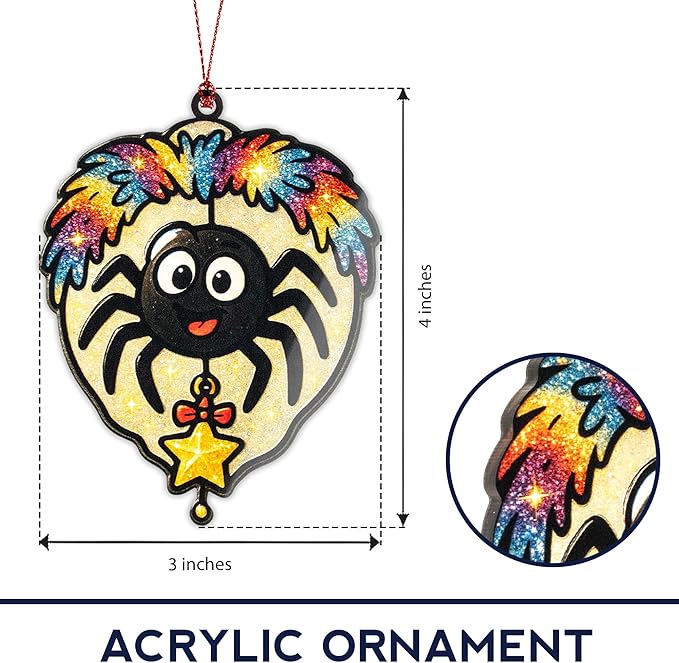Christmas Spider Ornament – Lucky Holiday Spider with Star | Glitter Rainbow Ornament Card – Fun Quirky Holiday Decor – Sparkly Gift Tradition – Suncatcher Effect Window Spidergag 1