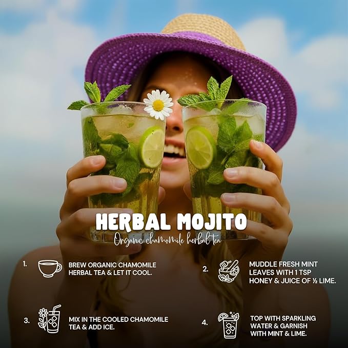 - Soothing Chamomile Blend-Crafted with premium organic chamomile, enhanced with raspberry, hibiscus, and green tea for a balanced, calming, and refreshing flavor.