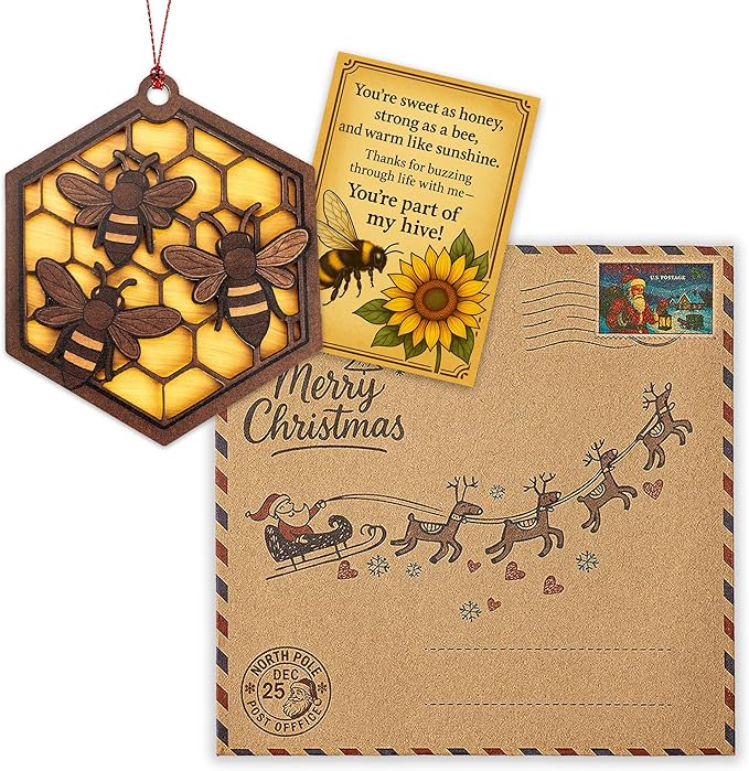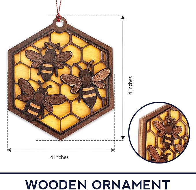 Bee Ornament - Honeybee Decor - bee Gift for Women - bee Gifts - bee Decorations for Home - Christmas Ornament 2025 - White Elephant Gifts - Xmas Tree Funny Decoration RUSATEN Beehive