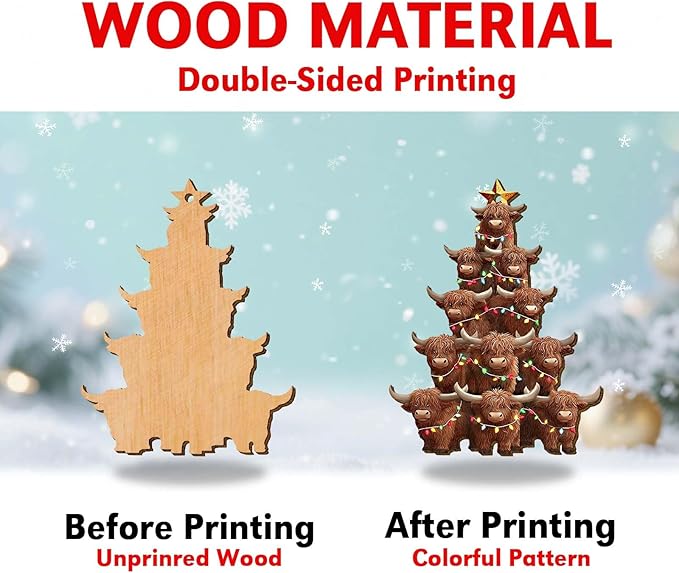- Material: Made from high-quality wood, our Christmas ornaments are odorless, safe, and built to last. Featuring vibrant double-sided animal prints, they’re durable and perfect for years of festive use.
