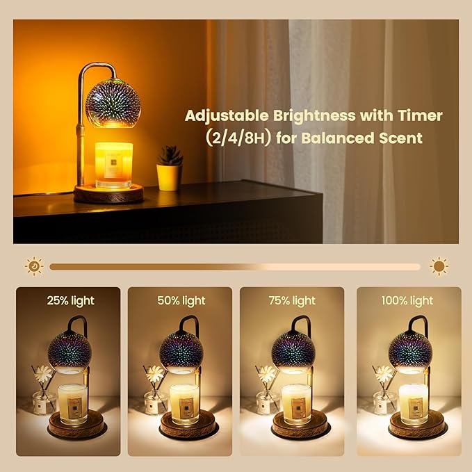 - [Reliable Support] Powered by a halogen bulb, the lamp gently melts wax with no fire, smoke, or soot—enjoy hours of clean, consistent fragrance safely. Candle warmer lamp with timer for automatic shutoff, giving you convenience and peace of mind. Our Customer Experience Team is available 24/7 and supports a 30-day return policy plus a 24-month warranty.