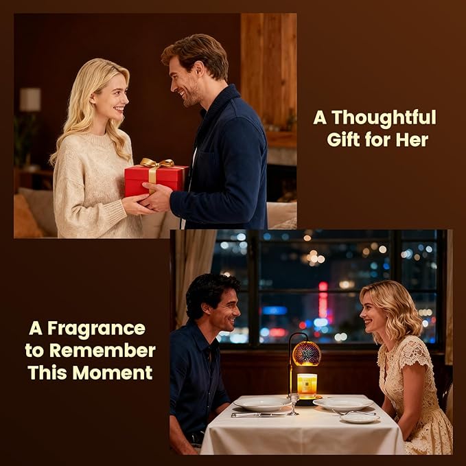 - [A Thoughtful Gift for Any Occasion] Perfect for birthdays, Christmas, housewarmings, or as a treat for her, this electric candle warmer fills the room with gentle fragrance that marks special moments. Ideal for yoga, cozy baths, quiet workspace, romantic dinners, or your gaming room—bringing soft light and soothing scent wherever you need to unwind or focus.