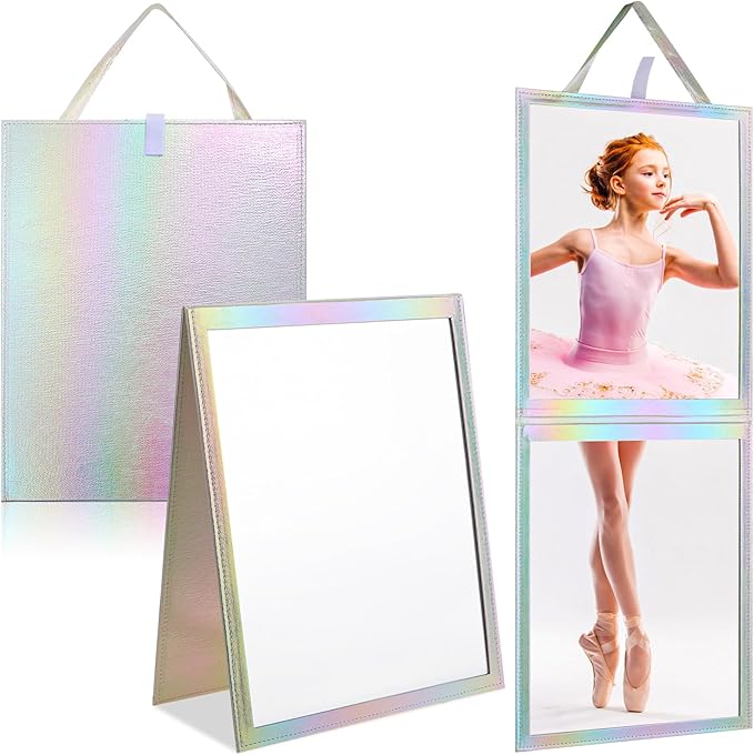 - Safe and Sturdy: the foldable dance bag mirror is crafted from quality acrylic material, ensuring the mirror's clarity, reflection, and durability for prolonged use; Additionally, this mirror is enclosed in a protective holographic that makes the mirror safe to handle, resistant to dust and broken