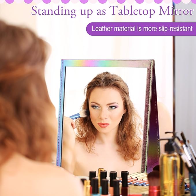 - Foldable Backstage Mirror: the package includes 1 piece of holographic backstage hanging mirror, when unfolded, the mirror measures approximately 33.5x 13.4 Inch, making it large enough for a comprehensive view; On folding, it becomes compact to a size of approximately 16.73 x 13.39 inches/ 42.5 x 34 cm; It provides travel size hanging mirror which can be carried from place to place by folding it and you can use it anywhere
