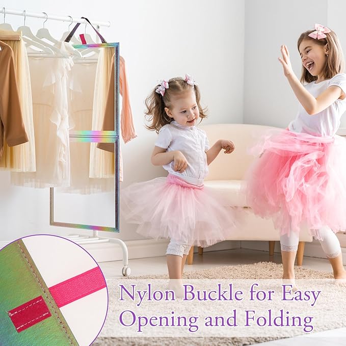 - Safe and Sturdy: the foldable dance bag mirror is crafted from quality acrylic material, ensuring the mirror's clarity, reflection, and durability for prolonged use; Additionally, this mirror is enclosed in a protective holographic that makes the mirror safe to handle, resistant to dust and broken