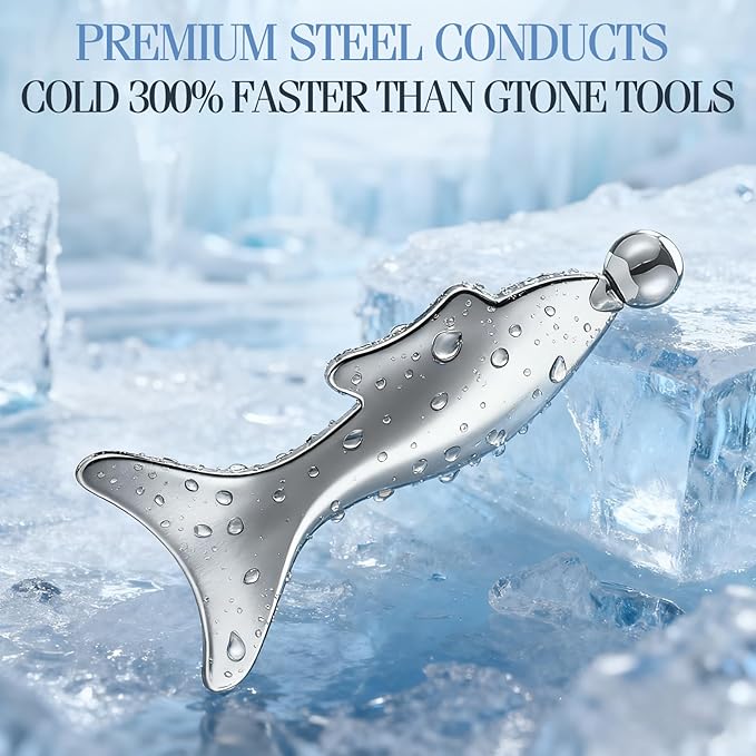 - 【4-in-1 Spa Master at Home:】- Beyond Gua Sha:Fish shape = Face roller + Eye depuffer + Lymphatic Drainage + gua sha! Replace 4 tools with one hygienic metal wonder. Your 5-min radiant skin ritual.