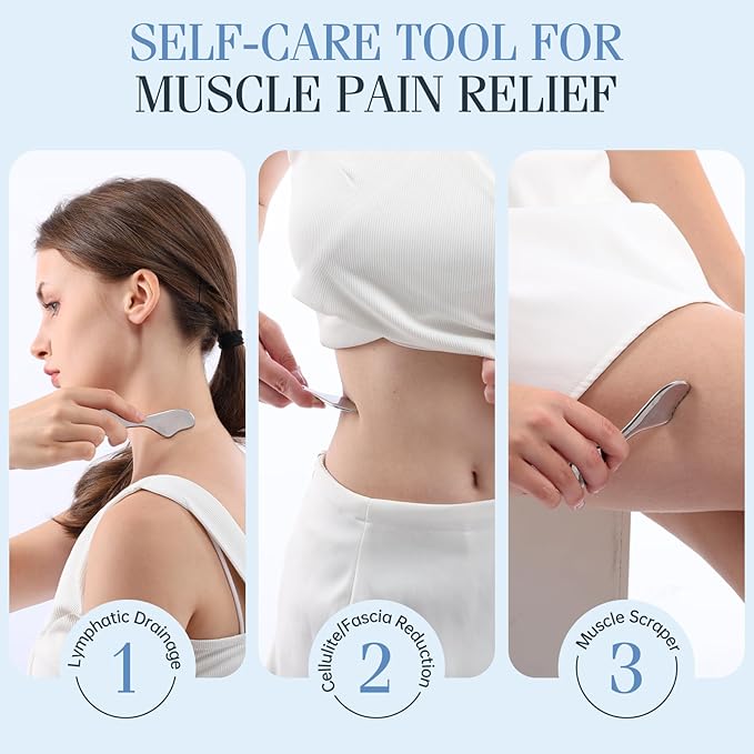 - 【Erase Fine Lines & Boost Radiance】- Metal Gua Sha tool = Instant Facelift!Glide our gua sha facial tool with serum/oil to lift + firm skin. Stimulates lymphatic drainage to reduce puffiness while fighting wrinkles. See visible glow in a month!