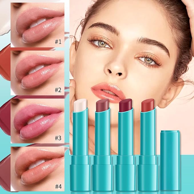 - [Available in Four Colors] This moisturizing cosmetics lipstick set comes in four colors, namely Clear Shimmer, Dusty Rose, Muted Rose, and Peach Coral. This tint lip balm has a nice range of shades that can be mixed and matched. So You can use this lip balms alone or mix them.